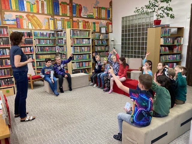 Březen - I. třída v knihovně v Hořicích