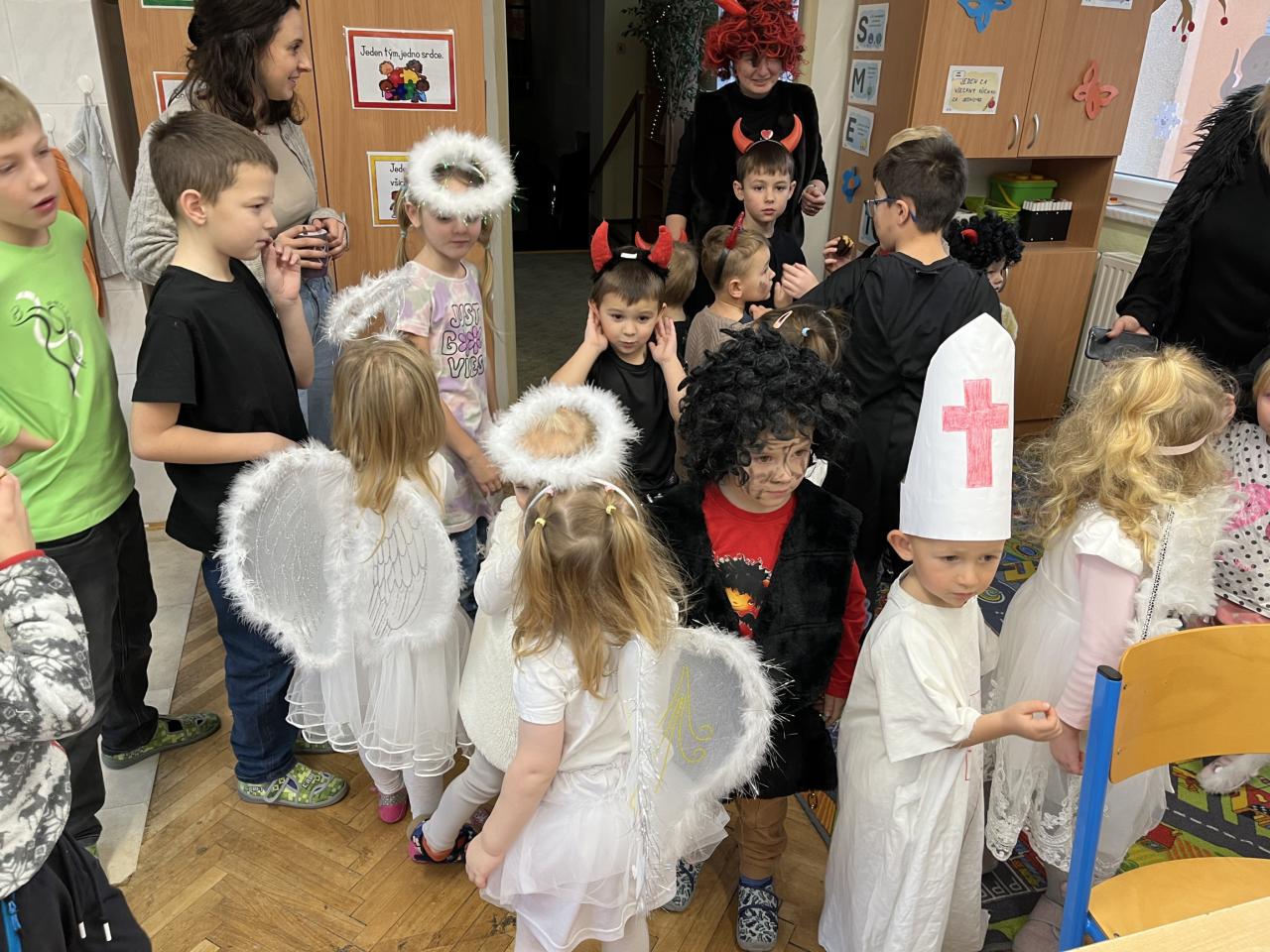 Do školy zavítal nejen Mikuláš s andělem a čertem, ale i hromada jejich malých kamarádů.
